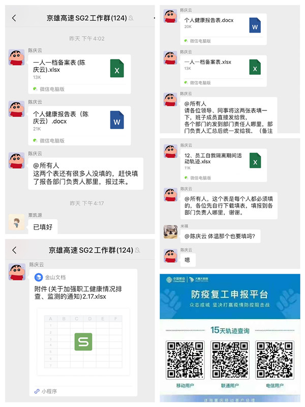 个人健康报告、手机漫游出行轨迹信息记录、一人一档备案、签写健康承诺书等,这些都是作为返岗前每人必须填报的基本信息。综合部收集返岗人员、在家待岗人员的身体情况信息,结合项目实际工作情况,合理组织人员分批次返岗,鼓励返岗人员采用点对点、一站式直达交通的方式,在返程中全程佩戴口罩,做好个人防护,避免途中感染。