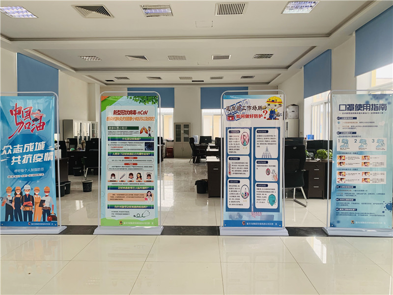 “让党旗高高飘扬在防控疫情斗争第一线”“戴口罩、勤洗手、多消毒、不聚集”等疫情防控知识、项目复工注意事项等宣传展板、标语、横幅遍布整个项目部驻地和施工现场。党群部利用微信群、钉钉APP等软件,将集团公司、业主单位和项目属地政府关于疫情防控期间如何做好复工复产的通知精神、要求等信息第一时间传递给项目部全体员工,并依据上级要求制定项目部管理规定等,引导全体员工提高对疫情的科学认知,正确面对疫情,调整好自己心态,不传谣、不造谣、不信谣、不恐慌,做好自身防护,合理安排作息时间,立足岗位,以积极饱满的精神面貌做好本职工作,共同为项目有序推进贡献自己的力量。