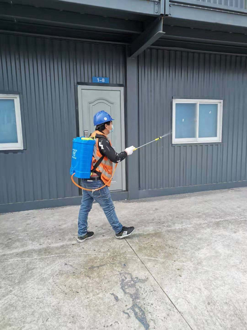 疫情防控期间,项目部严格控制入场后的人员外出;安排疫情防疫专员,对进入现场的施工作业人员每日进行早晚两次体温测量,并每日上报人员健康情况;安排专人向入场施工作业人员每人每天发放防护口罩,并对废弃口罩集中处理;安排专人每天对项目办公区、生活区、施工作业区、入场车辆等进行全面消毒;在疫情防控期间,安排每间宿舍只住一名职工,施工作业人员就餐执行分时段分餐制。