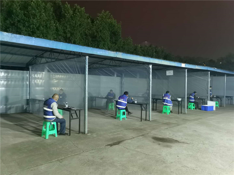 面对困难,项目部严格落实上级关于企业复产复工的部署要求,结合实际、多措并举做好疫情防控和复工复产准备工作。一是严格落实工作制度,积极编制复工方案、疫情防控工作方案、新型冠状病毒疫情应急预案;二是紧急筹备防疫物资,积极拓宽渠道,加强口罩、消毒液、防护服等物资采购;三是加强施工作业区的统一管理,在施工现场仅保留一个出入口并设置消毒杀菌通道,工人进出时均按要求进行体温监测;加强工人宿舍、用餐区、生活区和作业区改造,在每个区域设置独立的临时隔离区;四是加强项目疫情防控,严格实行封闭管理,对入场工人进行信息采集、实名编码;严格宿舍分配,每间住宿不超过两人,指派专职人员负责每日清洁消毒和日报表工作;设置用餐区分隔间,组织专人分餐、错时就餐。同时,项目部还采取制作宣传展板、组建工人微信群等形式,积极开展疫情防控宣传培训,全方面、多角度向工人宣讲普及疫情防控知识、安全生产知识,用心、细心做好工人健康管理和安全管理。