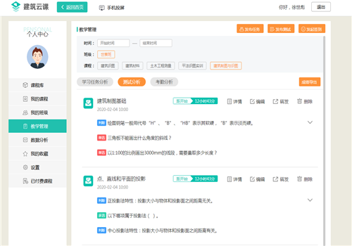 学院教务部门充分分析世赛班学生情况,结合上届基地训练经验,利用手机APP以及各类课程资源,针对性开设了“建筑制图与识图”、“工程测量”等专业课程;学生利用手机、电脑等在线学习技术理论,提升理论水平;教练利用教学平台,发布教学任务,实施教学测试,实时掌控学生学习情况,并根据学生在线学习提出的疑问适时开展网上答疑活动,确保集训学生不因疫情而影响训练。