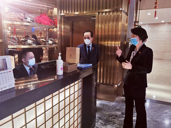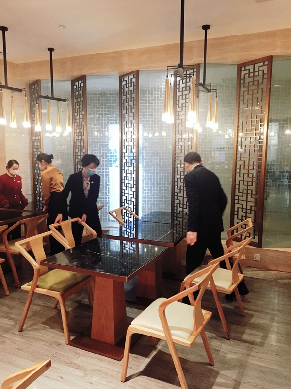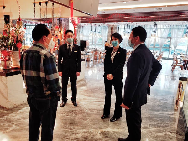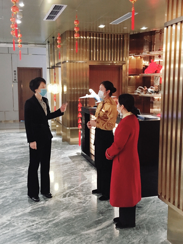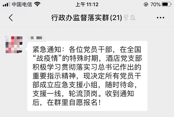 1月27日,酒店党支部吹响了党员干部应急支援集结号,在餐厅、在大堂、在客房,党员干部排好每天的班次,轮流为一线的员工轮班替班,让还未来得及休息的员工好好休息,让无法回来上岗的员工放慢回归的步伐,让无法回家团年的员工感受到大家庭的温暖,让无法和亲人团聚,内心对亲人健康焦急的情绪得以纾解。