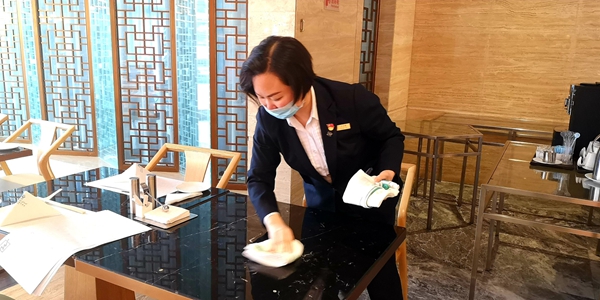 “趁着放假,工程部轮流对空调消毒、游泳池补马塞克、电梯日常维护、客房维修……”作务一出,工程部员工没有怨言,”请领导放心,我们早做好了准备。”