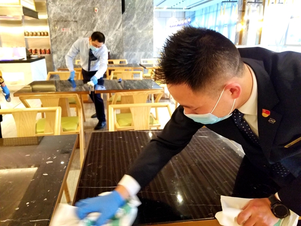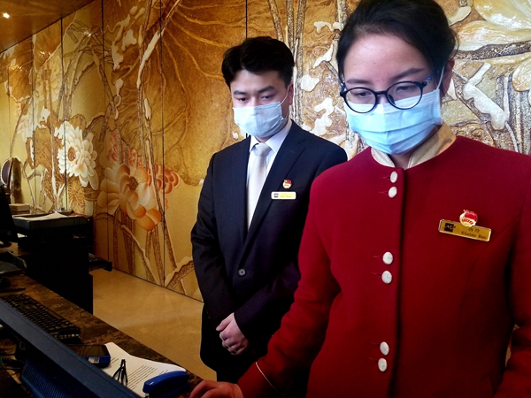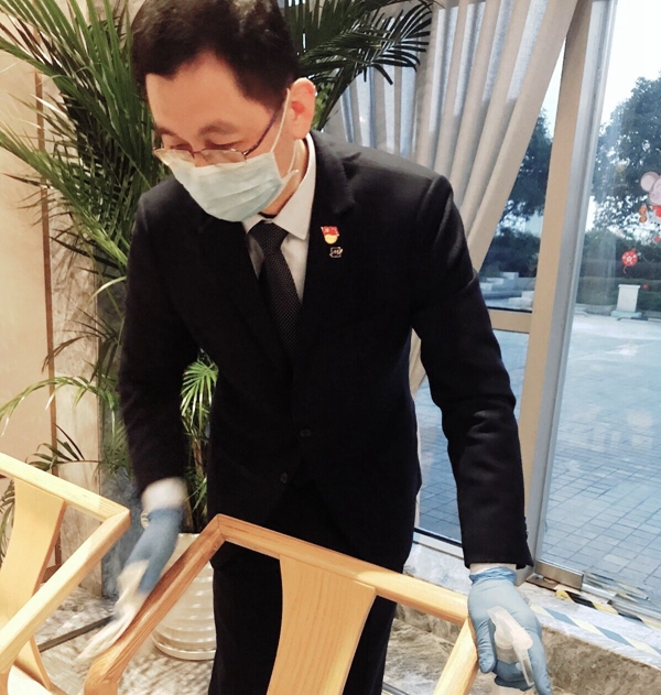 “我很想回家,但我更愿意和大家在一起。”90后前台员工彭伟,是一名共青团员,是酒店实习生中的一员,年前就跟父母商量好回家过年,但礼宾部排班有困难,加之疫情突发,工作任务加重,他便主动请缨留在酒店和大家在一起,每天他的工作就是给来往的客人测体温,提醒客人各种防疫相关事宜,给酒店大堂消毒。