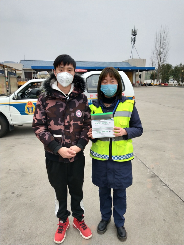乐至县民间为遂资收费站赠送口罩