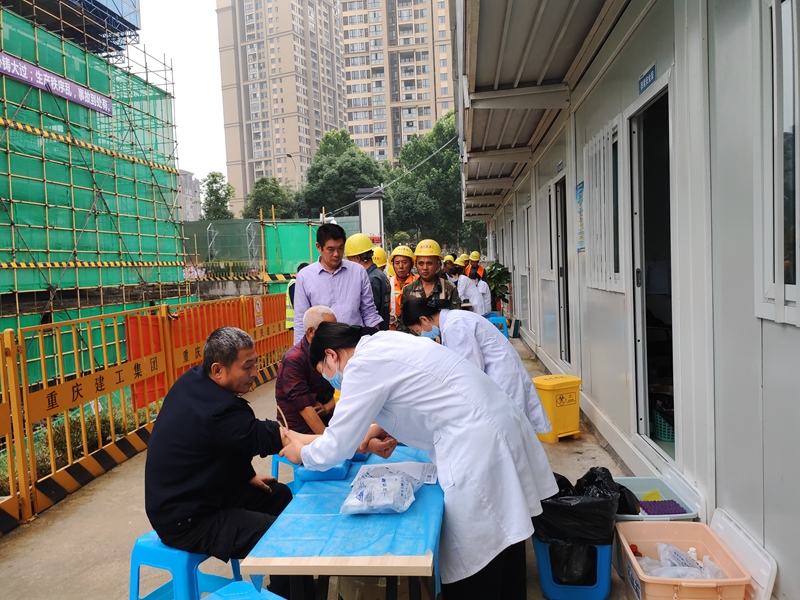 6月2日,建安事业部高科N16、出口加工区道路改造项目部联合两江新区民生医院,为192名全体工人及管理人员施工一线工人进行健康体检。