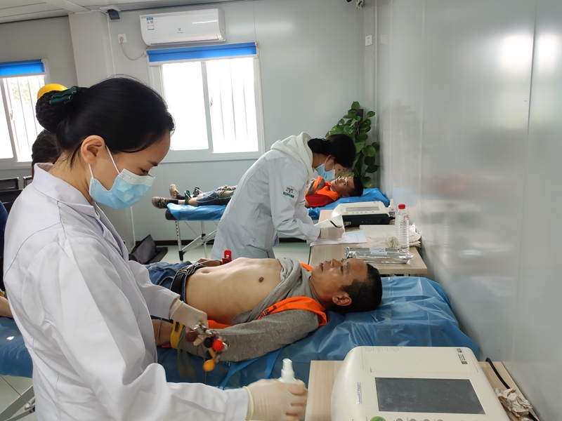 “在项目工作的人员,特别是农民工,他们从事高强度的体力劳动,但健康意识薄弱、很少主动进行健康体检。”高科N16项目经理陈吉刚介绍,为进一步落实“百日行动”保百年大庆工作,项目部在建安事业部的组织安排下,开展了这次活动,旨在帮助工友们有效预防突发疾病和职业病风险,控制和消除职业病危害。