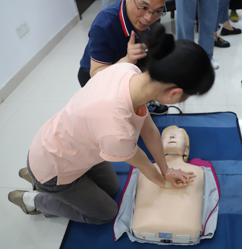 实操培训过程中,学员们踊跃实践,在授课老师的指导下初步体验了心肺复苏术、气道异物梗阻解除等急救技能,进一步巩固了对急救知识的正确应用。培训结束后,职工们纷纷表示“学习急救措施不仅增加了我们在医疗方面的知识,更可以在危急关头帮助病人争取到宝贵的时间,生命诚可贵,健康永远是第一位的”。