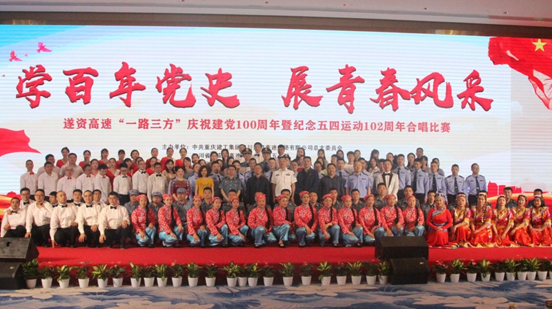 为庆祝建党100周年、纪念“五·四”运动102周年,2021年5月11日,遂资高速公司党总支联合“一路三方”兄弟单位四川省公安厅高速公路公安局五分局、四川省交通运输厅高速公路交通执法第三支队共同举办了以“学百年党史、展青春风采”为主题的合唱比赛。