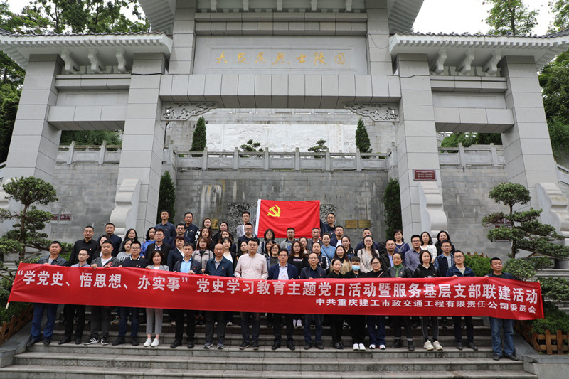 4月23日,市政交通公司开展党史学习教育主题党日活动暨服务基层支部联建活动,党委领导班子、机关三个党支部、营销分公司党支部及第十八项目部党支部全体党员干部近70余人,前往大足烈士陵园红色教育基地,缅怀革命先烈。