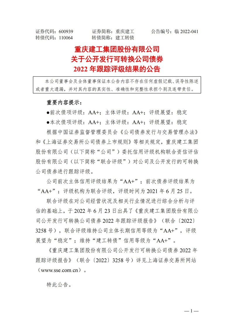 bv伟德源自英国始于1946关于公开发行可转换公司债券2022年跟踪评级结果的公告