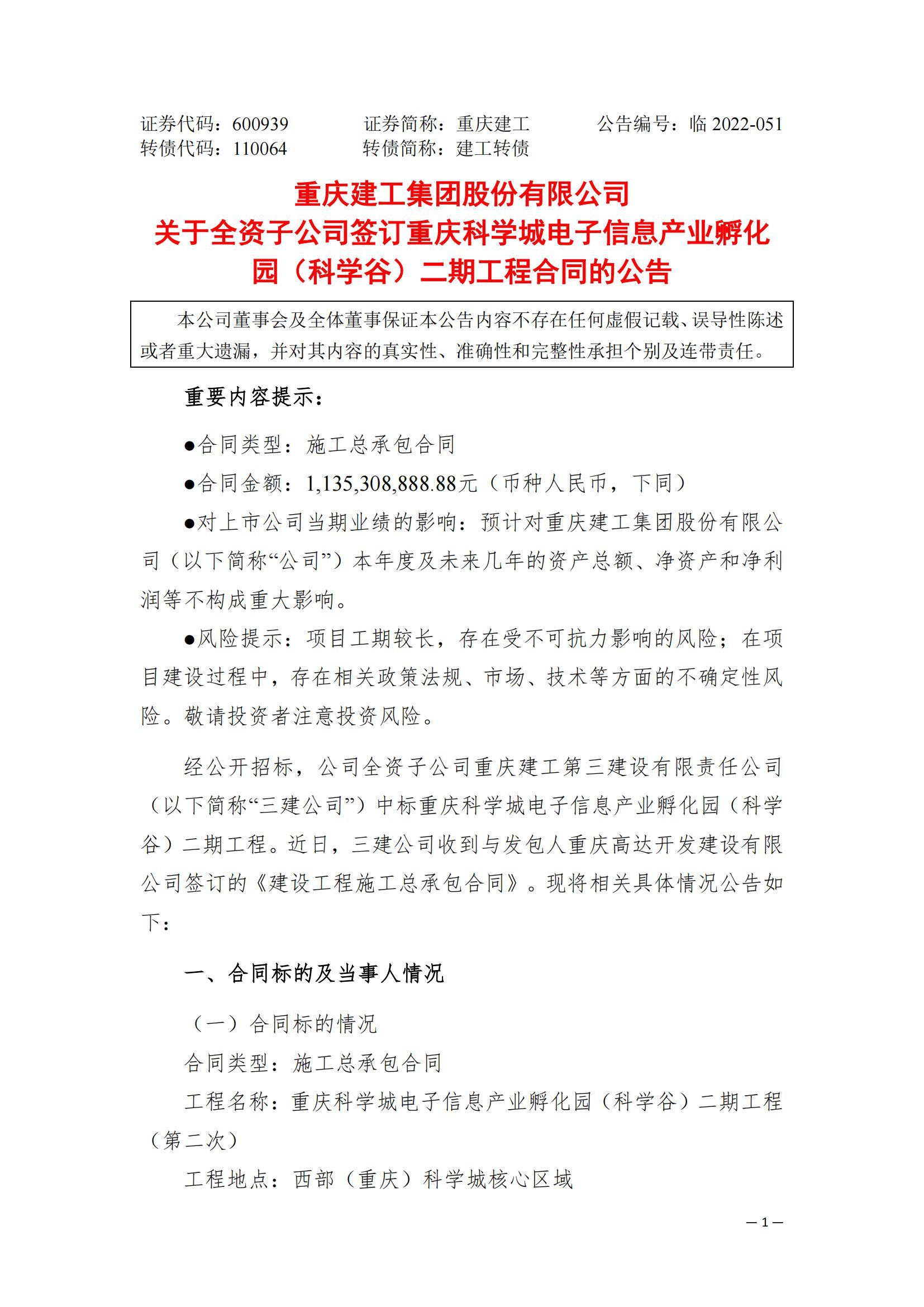 bv伟德源自英国始于1946关于全资子公司签订重庆科学城电子信息产业孵化园(科学谷)二期工程合同的公告